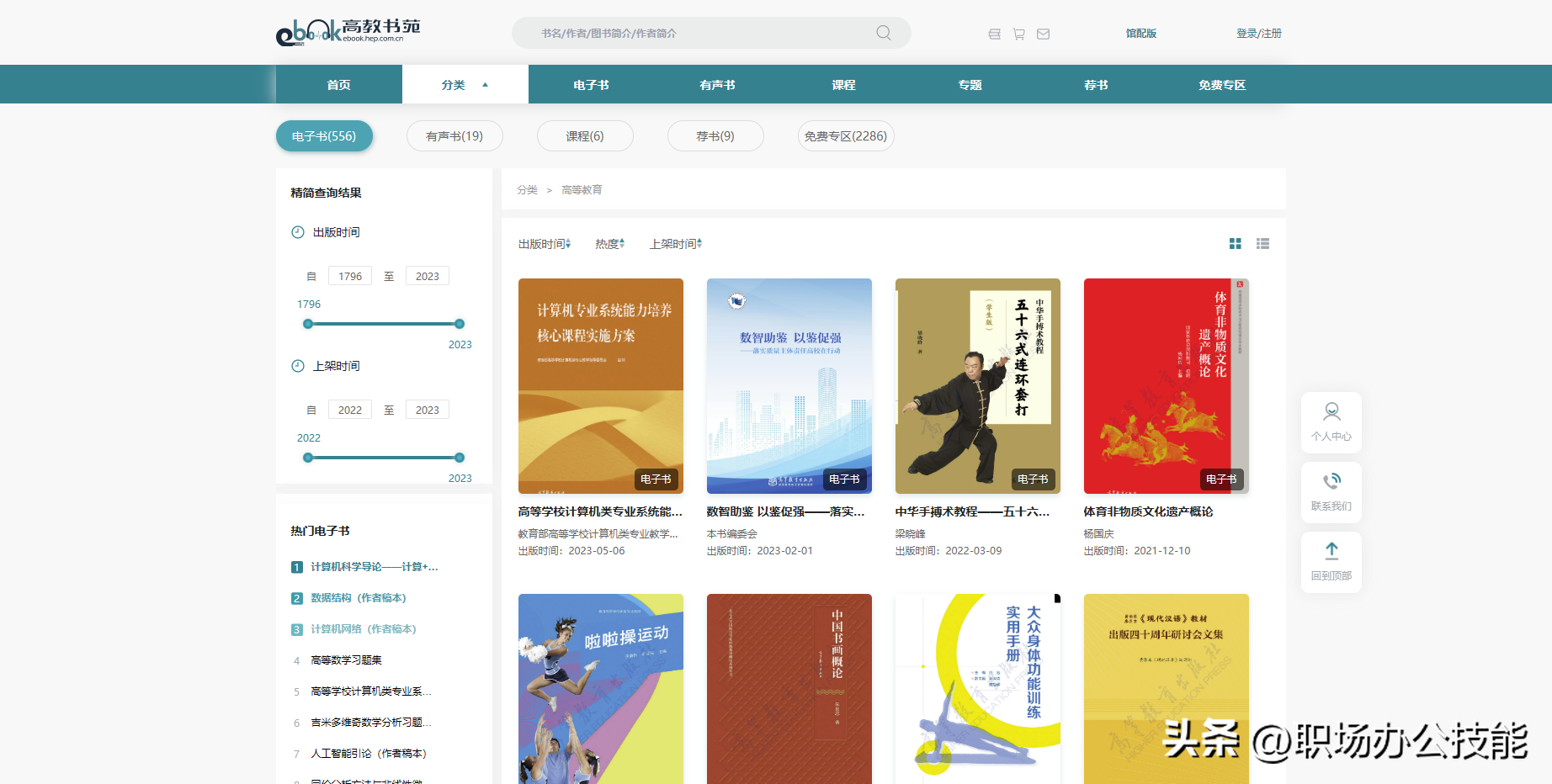 一个提供高等教育出版社出版的电子教材的网站,资源丰富而且分类详细,包括高等教育、高等职业教育、中等职业教育、五年制高职等等,可以根据这些分类查找电子课本。