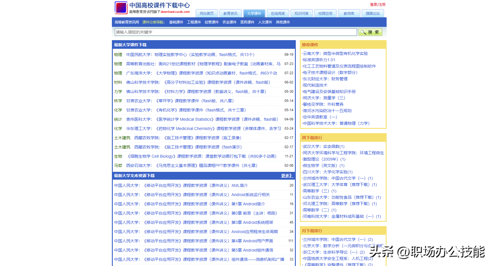 一个专门分享大学课件的网站,包括基础课件、工程课件、经管课件、医药课件、人文课件等等,除了按照课件类型查看之外,还可以根据学校搜索课件。