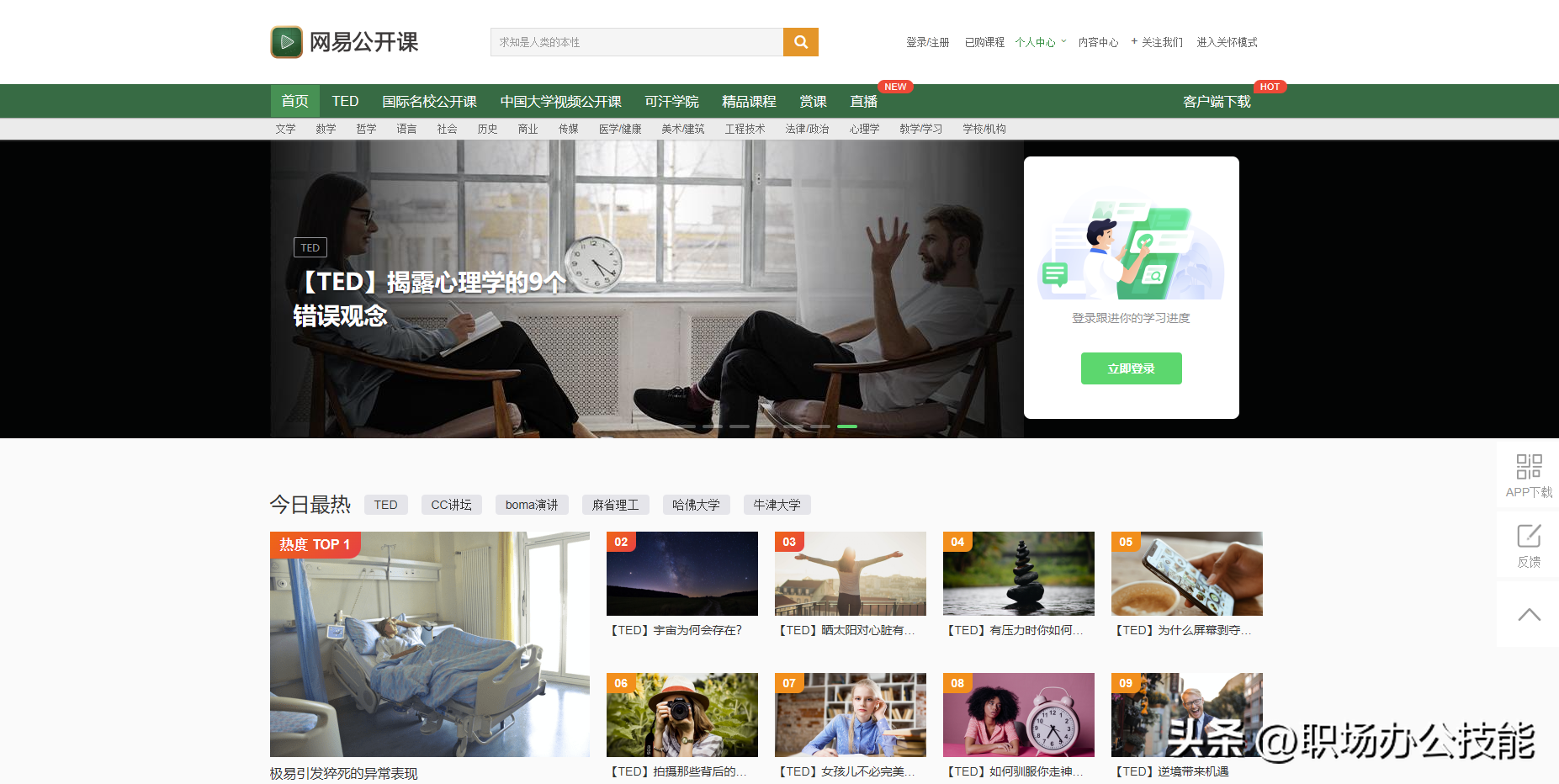 涉及到的科目也非常多,有文学、数学、语言、社会、历史、商业、传媒、医学健康、法律教育、工程技术等等,你跟可以根据科目查看公开课,也可以根据大学查看。