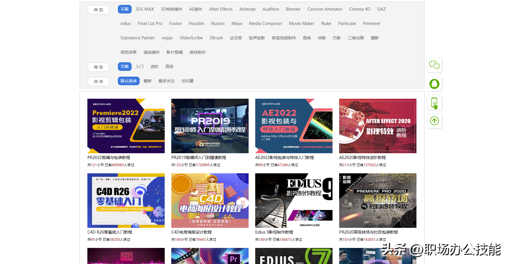 一个提供全方位软件学习网站,它里面包括各种各样的软件学习课程,有电脑办公、平面设计、室内设计、室外设计、机械设计、工业自动化、影视动画、程序开发等等。