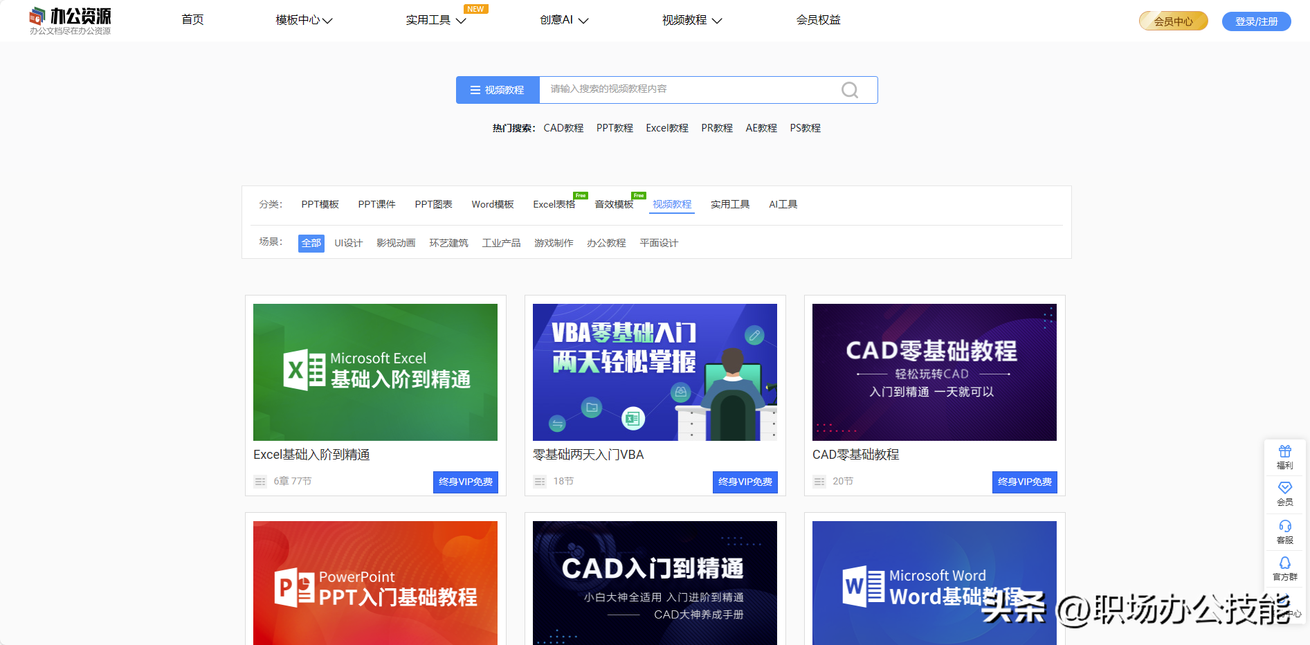 其中它里面还有软件教程可以查看,包括UI设计、影视动画、平面设计、办公教程、平面设计等等,很多都是零基础教程,从简到难,对于新手小白来说比较友好。