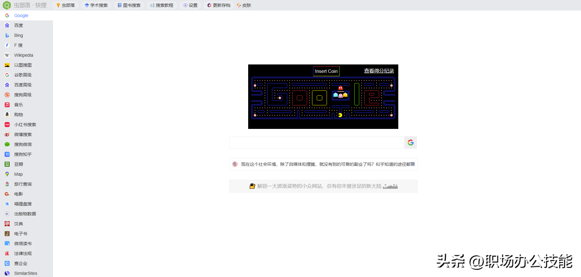 一个万能的搜索网站,包括各个搜索引擎,比如Google、百度、Bing、谷歌高级、百度高级、搜狗高级等等,还有以图搜图、购物、微博、学术搜索等功能。