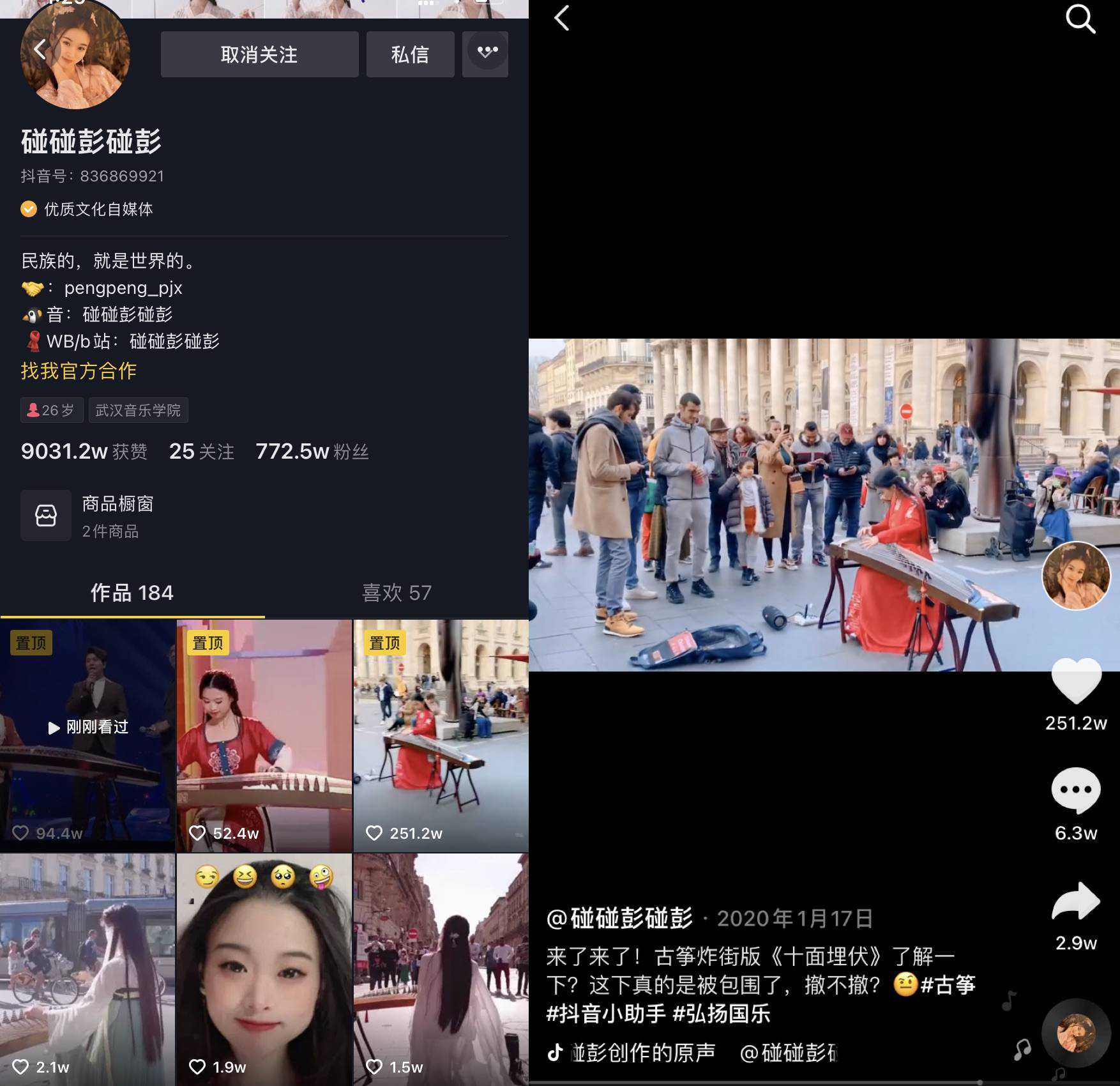 借助互联网的传播力,来自法国、越南的粉丝也希望向她学习古筝。这正印证了@碰碰彭碰碰简介里写着的那句“民族的,就是世界的。”