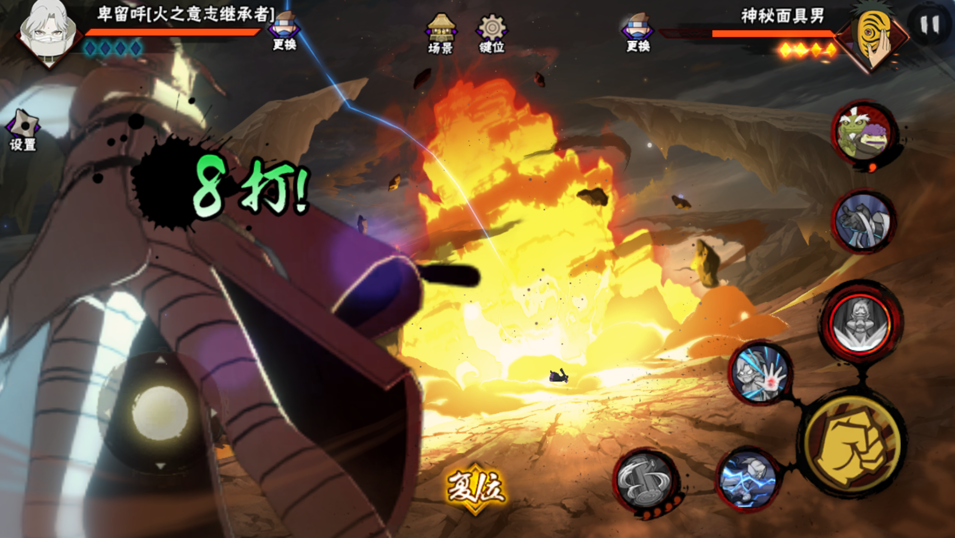 卑留呼的组合技X轴算是挺远的,但不太建议用组合技起手,基本就是连招过程中拉伤害。因为就算对方手里没有替身,组合技万一空掉,你不如用两个技能单独起手了。另外,这个忍者的组合技也可以用二技能防反成功后的二段和一技能释放,不确定这个设定后续是否会改掉。