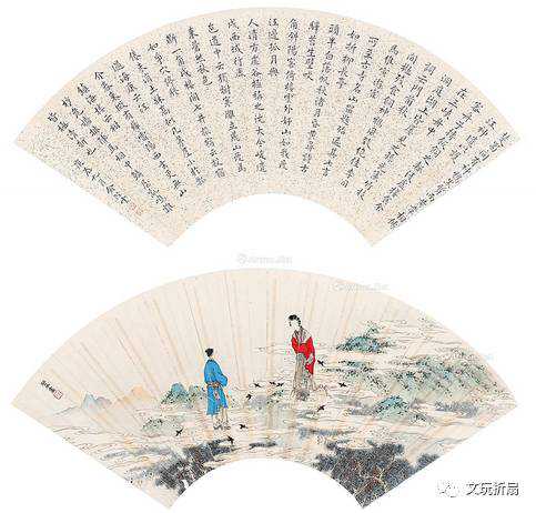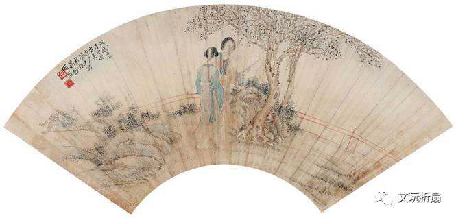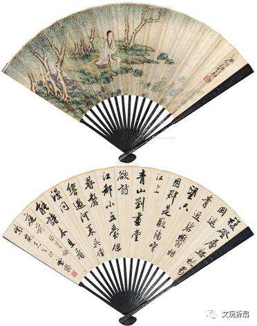 西施浣纱·成扇管平湖画溥伒书