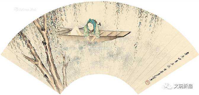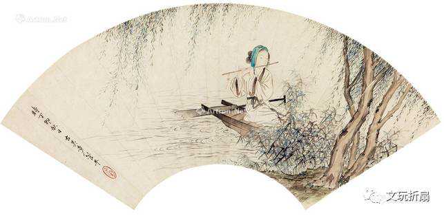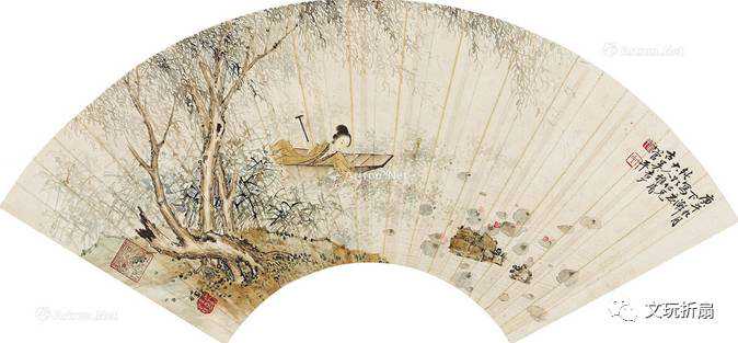 渔家乐扇面管平湖画