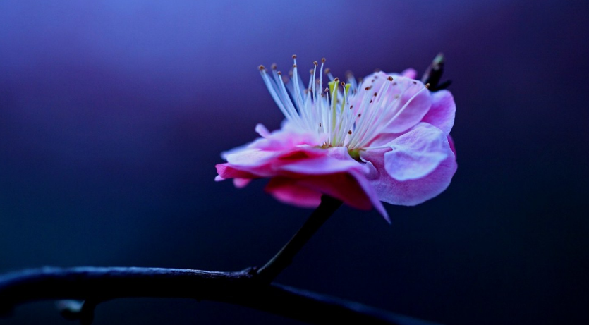 蓓蕾点蘸似含羞,流盼梅红放野浮。