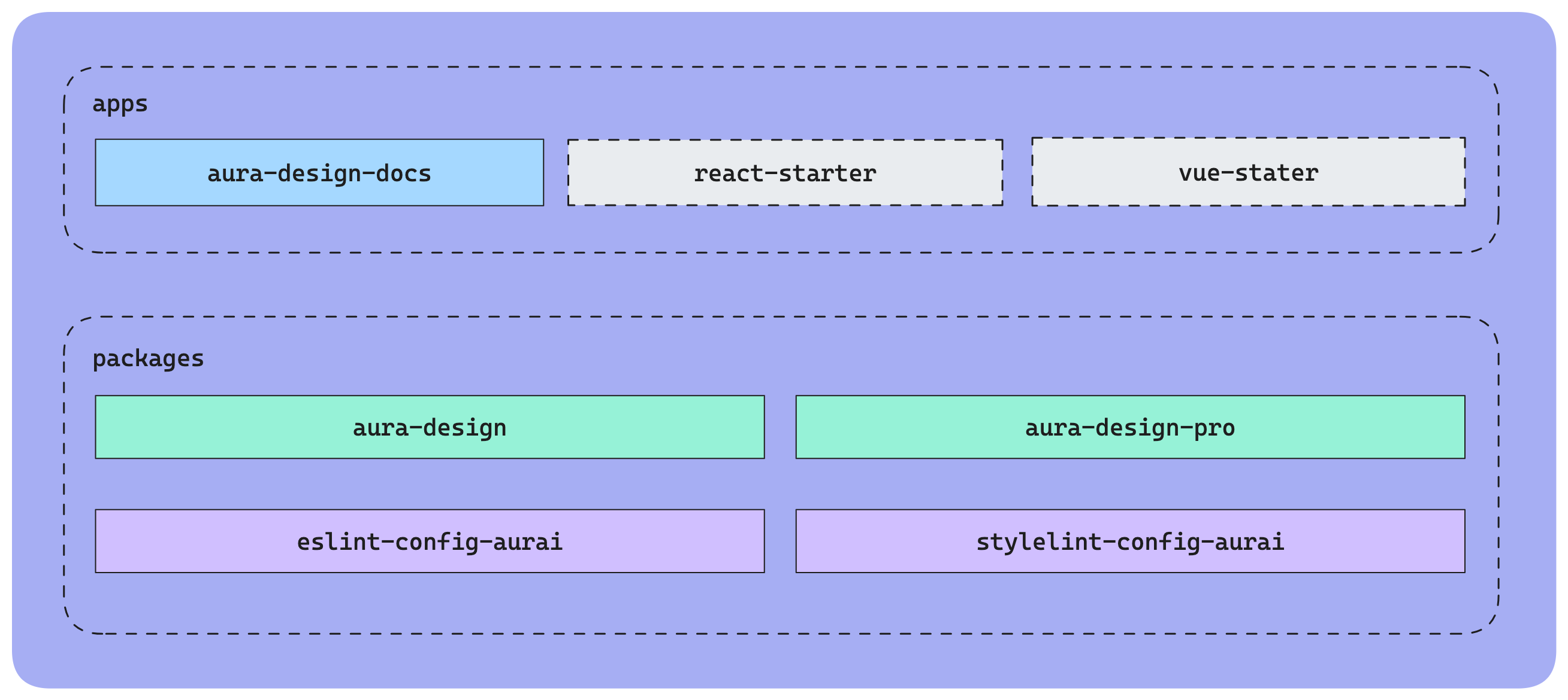 四、从0到1搭建AuraDesignWebComponents组件库1、工程目录设计该项目采用了Monorepo设计,旨在统一管理各个子项目,避免开发阶段频繁发布/安装npm包来同步代码。具体内容包括: