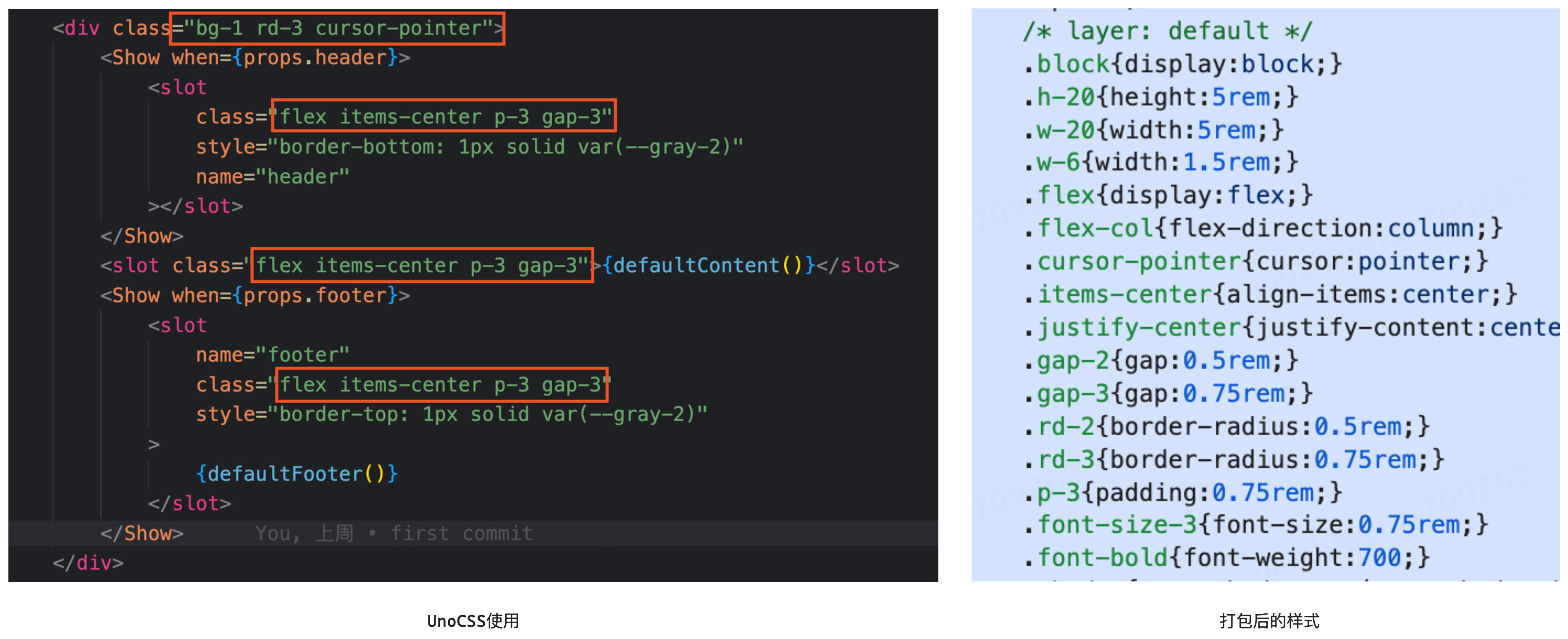 •原子化CSS方案:UnoCSS致力于将所有样式属性细分为最小单元的CSS,以便实现最大程度的自由组合和复用。此外,UnoCSS还具有自动分析文件中使用的样式的功能,只将实际使用的样式打包,从而减小文件大小。